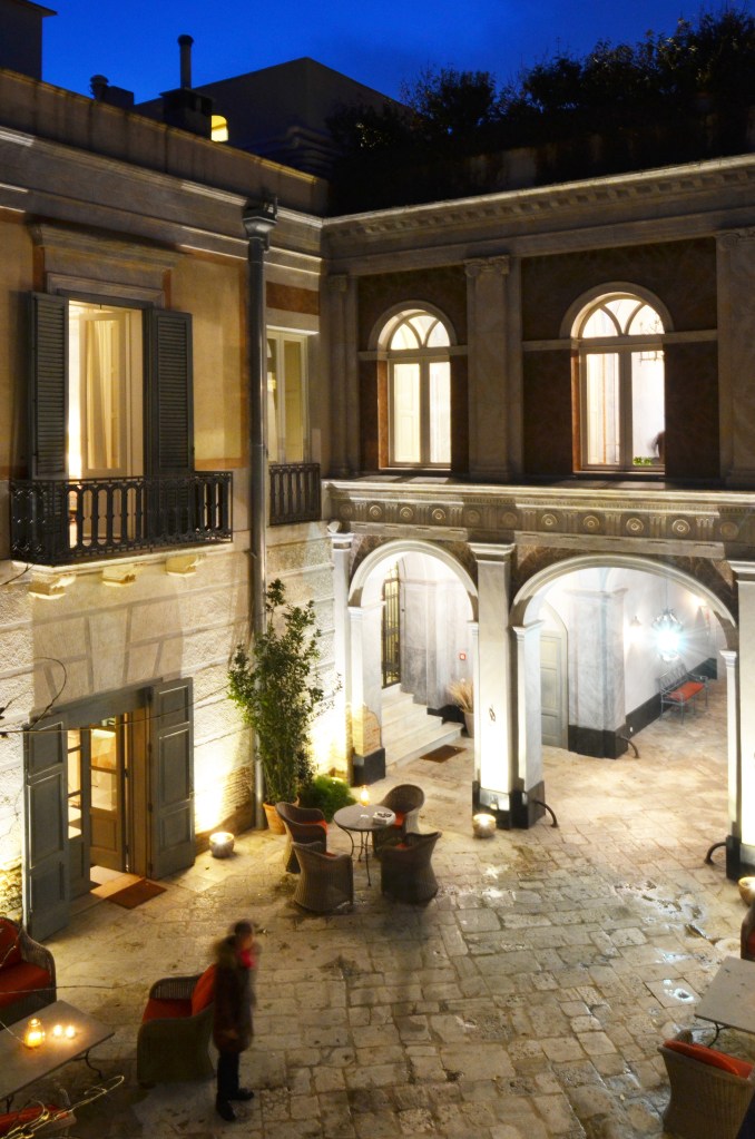 murs n’ont aucune fresque. L’impression de ne pas se sentir à l’hôtel est également renforcée par l’absence de salle de restaurant. En fonction de l’envie, on peut dîner sur sa terrasse privée, dans la cour à la lumière des bougies ou dans une vaste cuisine, pour ne rien perdre des subtilités des plats locaux élaborés parle talentueux chef Tommaso Lacanfora.
