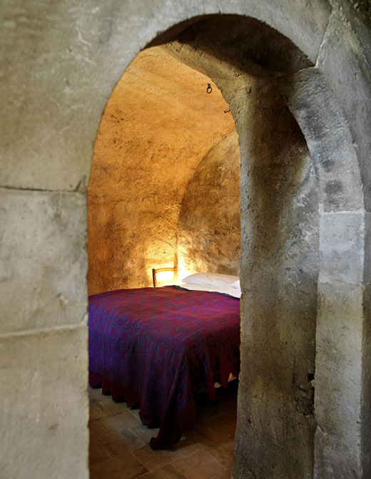 C’est là tout l’intérêt du projet : l’art du détail au service de l’authenticité. Lorsque cette restauration leur a été confiée, les architectes Di Zio & Clemente se sont attachés à excaver les volumes et les surfaces originales et à en maintenir la fonction première. Les cham¬bres resteront des cham¬bres et l’âtre de la cheminée, l’âme de chaque lieu occupé. À l’aide de photos d’archives et d’études menées par le Musée ethnographique des Abruzzes, les architectes travaillent avec un archéologue médiéviste. Par souci de confort, la rigueur de la pierre et la pénombre d’habitats moyenâgeux s’allient toutefois à une technologie de pointe. Le carrelage de pierre reste tiède sous la plante des pieds grâce à un chauffage au sol. Minimalistes, les chambres sont équipées d’une cassapanca, bahut contenant le trousseau de la mariée, et d’une madia, meuble en bois qui servait à conserver le pain durant la transhumance.