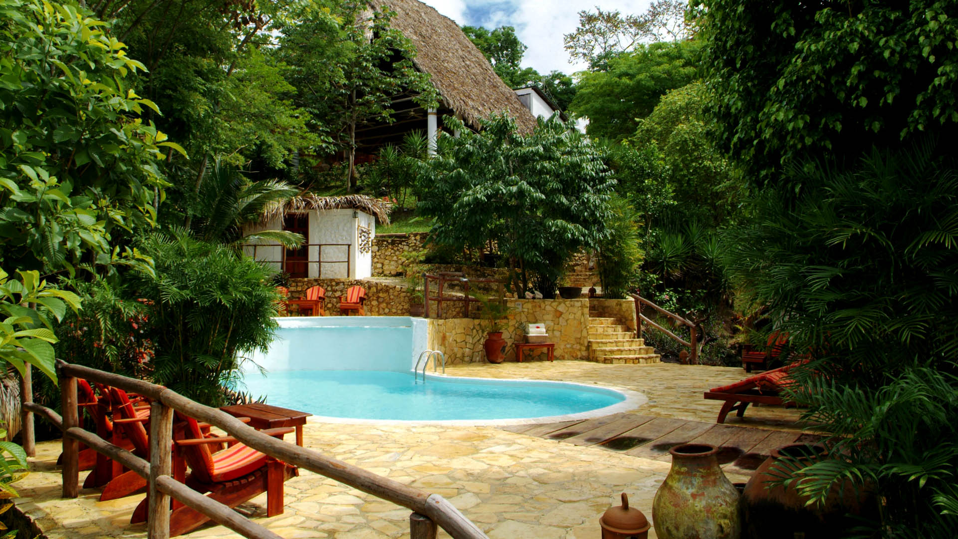 Situé dans la grande forêt tropicale au-dessus des rives du lac Petén Itzá… La Lancha, une charmante propriété de 10 chambres décorées d’œuvres d’art et des meubles en provenance de Bali, ainsi que des tissus et des sculptures de fabrication du pays maya au Guatemala, choisis personnellement par la famille Coppola. Au-delà de l’eau claire du lac est de Tikal, l’épicentre de la spiritualité maya. Enfoui profondément dans la forêt tropicale, les ruines comprennent plus de 3.000 structures où la mousse s’accroche aux étapes de temples anciens et des places sacrés du site de Tikal.