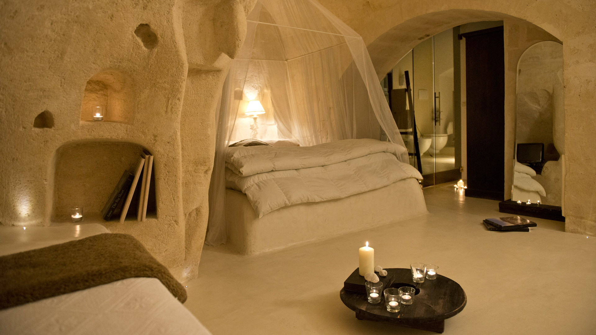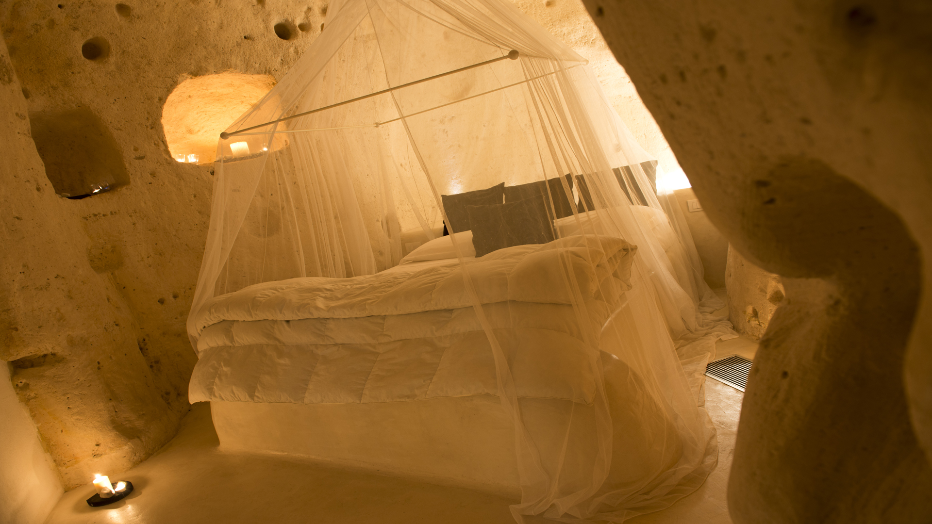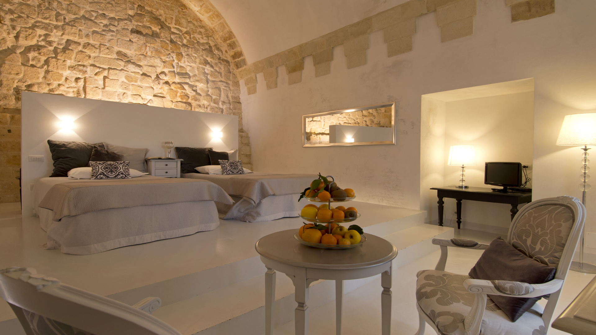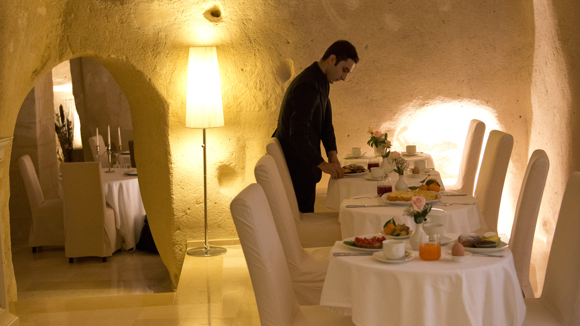 L’hôtel abrite 23 maisons historiques fabriquées à partir de troglodytes et caractérisée par des parois de roche ou de tuf. Chaque suite est différente des autres, résultat d’un travail qui respecte la spécificité du lieu. L’ameublement est élégant, conçu spécifiquement pour chaque environnement, des couleurs neutres et lumineuses sont à l’honneur et elles sont équipées avec de nombreux équipements et services. Vous pouvez choisir entre trois types, Deluxe, Junior Suites et Suites, à leur tour, toutes différentes les unes des autres. La typologie reflète une différence au niveau des mètres carré qui offrira des environnements plus ou moins spacieuses.